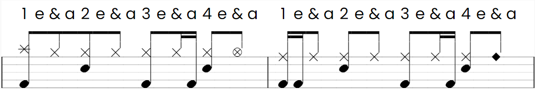 The following drum notation: